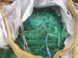 Green Pet lumps from PET strap manufacturing (green) 40-60 tonnes per month available Packaged in big bags.